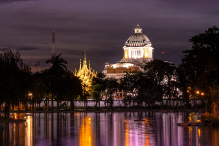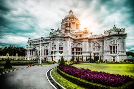 Bangkok, Thailand - Jun 19, 2016: Twilight of Ananta Samakhom Throne Hall Constructed under King Rama V, this grand Renaissance building has great frescoes and traditional Thai arts and crafts inside.