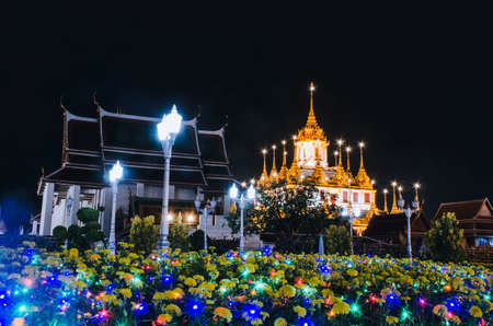 Wat Ratchanatdaram Woravihara night view of the temple, Bangkok, Thailand