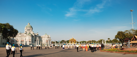 Bangkok, Thailand - September 28, 2017: Crowd of tourists in The Ananta Samakhom Throne Hall. Ananta Samakhom Throne Hall is a major tourist attraction in Bangkok.