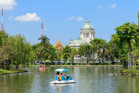 Bangkok, Thailand - September 28, 2018: Dusit Zoo and lake with paddle boats. Here is the oldest zoo in Thailand and will be permanently closed from October 2018 onward.
