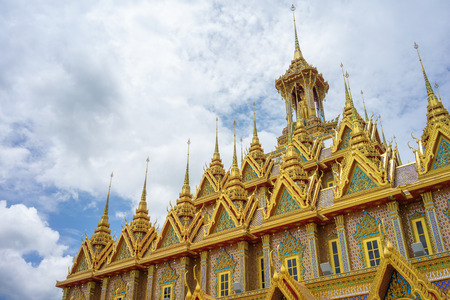 Golden Castle at Wat Chantharam (Wat Tha Sung) Uthaithani ,Thailand an old temple decorated with beautifully carved gold carvings