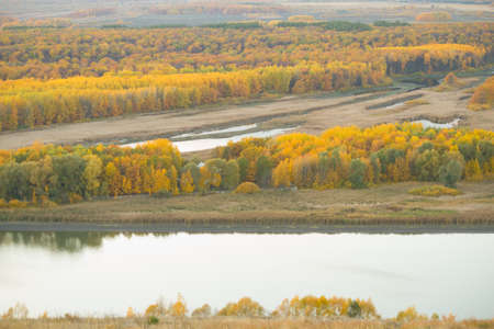 Autumn landscape. Aerial view. Autumn forest on the hill