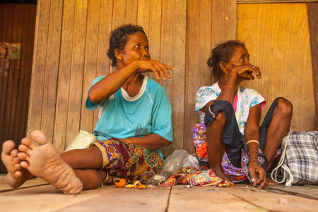 BERDUT, MALAYSIA - APR 8: Unidentified woman Orang Asli in his village on Apr 8, 2013 in Berdut, Malaysia. More than 76% of all Orang Asli live below the poverty line, life expectancy - 53 years old.