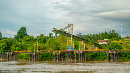 Huge conveyor at Mahakam Riverbank used to load coal to the barge. Industrial and mining background