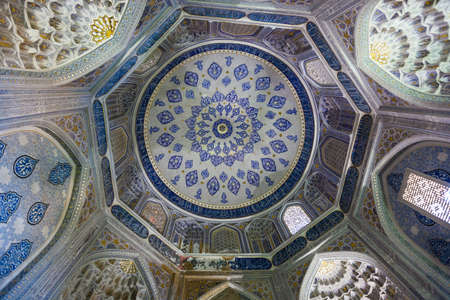 SAMARKAND, UZBEKISTAN - MAY 04, 2014: Ceiling of Aksaray mausoleum