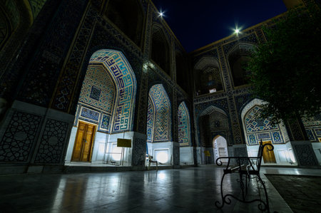 Colorful Registan square in Samarkand, Uzbekistan. Samarqand by night.