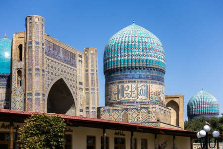 Beautiful Gur-e-Amir Mausoleum in Samarkand, Uzbekistan. Exterior view on sunny day. Guri Amir.