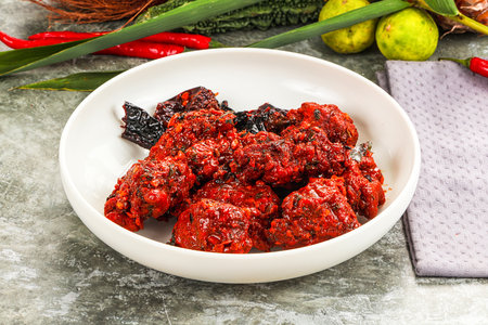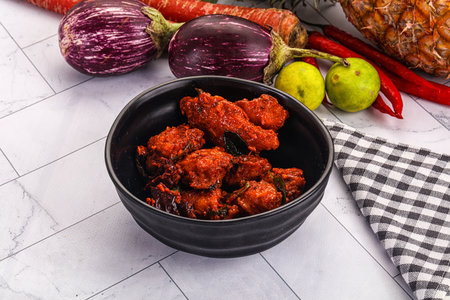 Indian cuisine - spicy Chicken 65 with sesame seeds