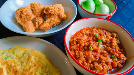 Ayam sambal balado or spicy fried chicken is Traditional food from Padang, West Sumatra