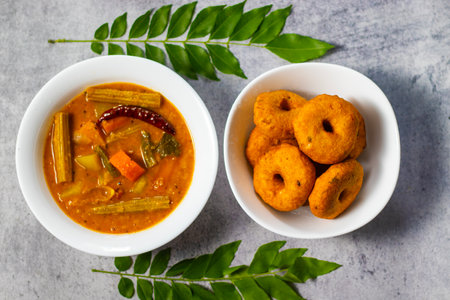 idli vada with sambar pr sambhar also called medu wada rice cake