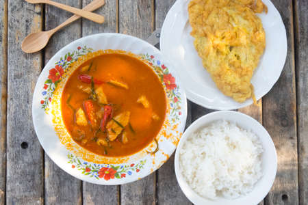 Dried red pork coconut curry (Panaeng) : eat with fried egg and rice delicious and famous Thailand food