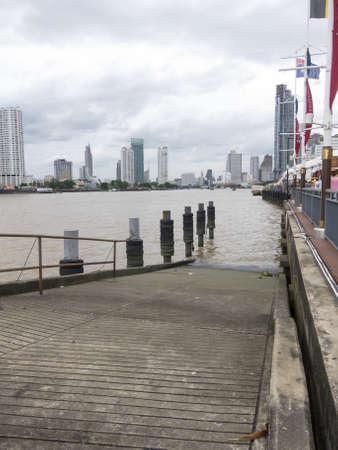 View of modern town beside Chao Phraya River in Bangkok, Thailand