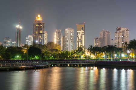 Landscape of building view at night in bangkok thailand
