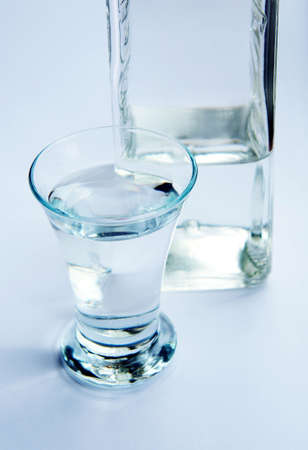 Glass of vodka and bottle on a light background