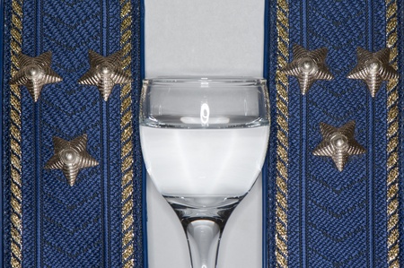 Colonel epaulets and a stack of vodka closeup