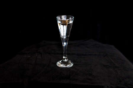 Glass with vodka on a black background
