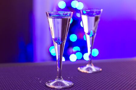 Two shots of vodka in the multiple bar lights