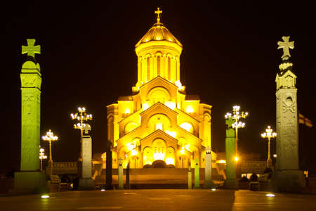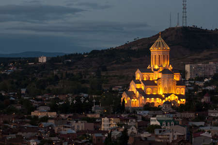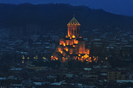 Night view of St. Trinity cathedral in Tbilisi, Georgia