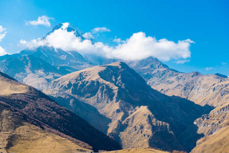 Autumn view of Kazbek mountain in Georgia. beautiful mountain landscape