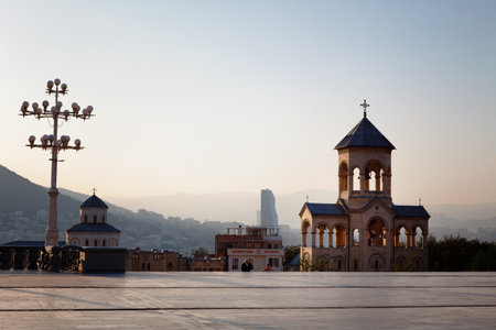 View of Holy Trinity Cathedral with blue sky at sunset, Tbilisi, Georgia