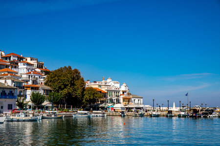 Amazing view of The Old town of Skiathos, Sporades, Thessaly, Greece