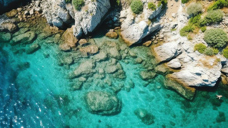 Generative AI : Aerial Top Down Drone view of Giola lagoon Island Thasos Greece