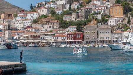 Hydra island, Greece, view of houses in the central part of the city.