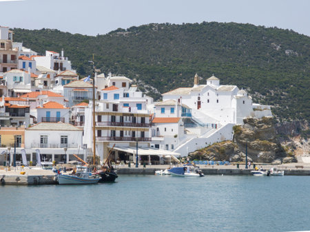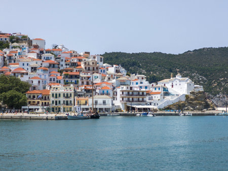 SKOPELOS, GREECE - JUNE 6, 2025: Amazing Panorama of Skopelos town, Sporades, Thessaly, Greece