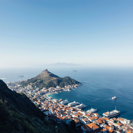 an aerial view of Palaia Epidavros, in the Aegean sea, Greece, on a summer day
