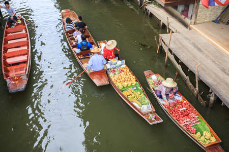 Ratchaburi, Thailand - February 26, 2012: Longtail boat with food and souvenir for sale in damnernsaduak floating market. This is a cultural heritage of Thailand. Activity of interest for tourists is take a boat visit the market along the river. And eat t