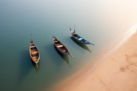 Generative AI : Aerial view of few boats on sunrise in Phuket Thailand