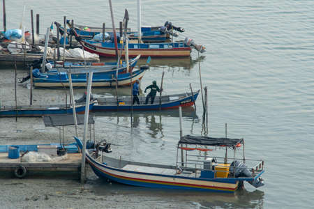 Butterworth, Penang/Malaysia - Jul 01 2018: Fishermen prepare go out the river to catch fish.