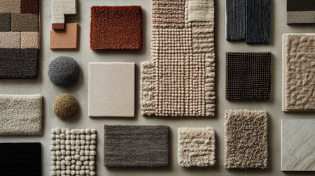 An engaging assortment of materials showcasing various textures and patterns, ideal for inspiring interior design projects and decor ideas.