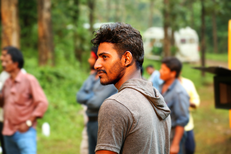 KODAIKANAL, INDIA - JUNE 29TH, 2015: Handsome young man looking outside and out of focus