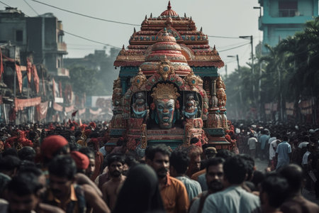 Ratha-yatra festival of Lord Jagannatha, Balabhadra and Subhadra during the annual Rathayatra in Odisha in the background. Happy Hindu India