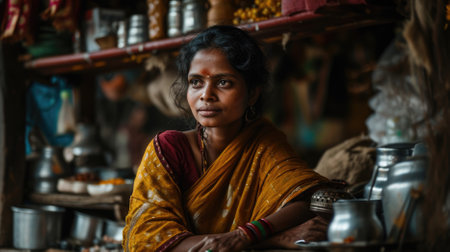 Portrait of a smiling Indian woman wearing saree and traditional clothes