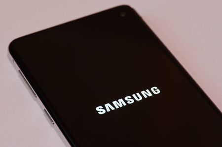 New york, USA - december 17, 2019: Samsung smartphone loading screen close up view