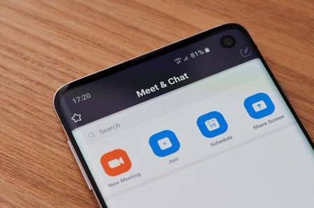 New-York , USA - April 1, 2020: Join meeting in zoom mobile app close up view