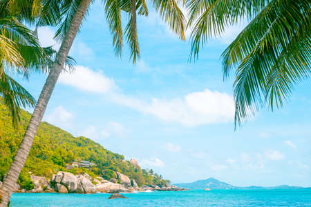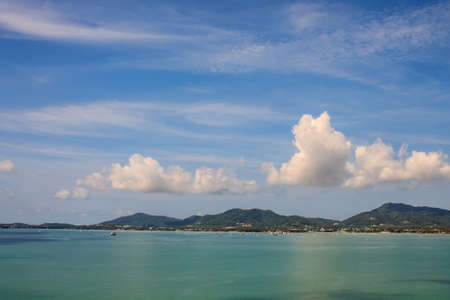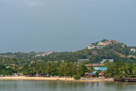 Amazing Koh Samui island beach and landscape panorama with view on Koh Pha-ngan in Thailand.
