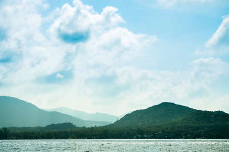 blue seascape with remote mountains on horizon. Thailand Island