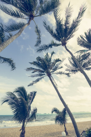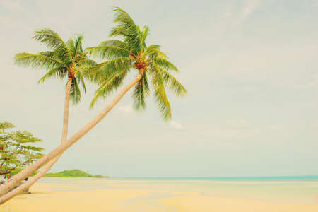 tropical coconut tree and beach in vintage style
