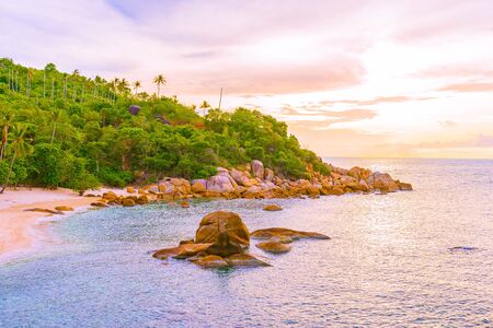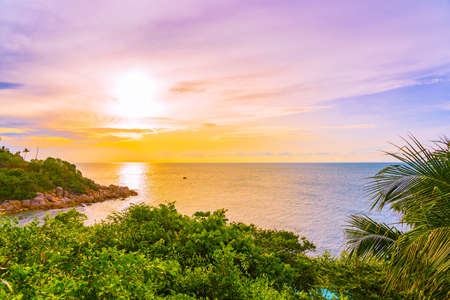 Beautiful outdoor tropical beach sea around samui island with coconut palm tree and other at sunset or sunrise time for holiday vacation travel