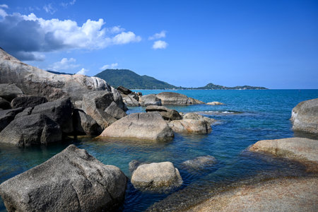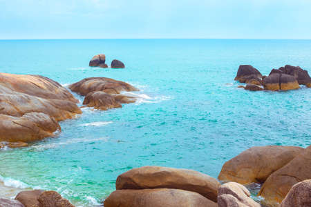 beach Chaloklum with rocks and sea of the Island in southern Thailand, Koh Pangan, Suratthani