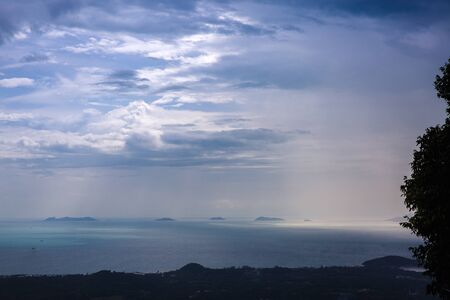 Viewpoint to the sea in sunset time at Koh Samui island, Thailand. Beautiful sun rays on the sea