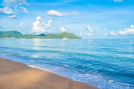 Beautiful tropical beach sea ocean with white cloud blue sky and copyspace for leisure travel in holiday vacation concept