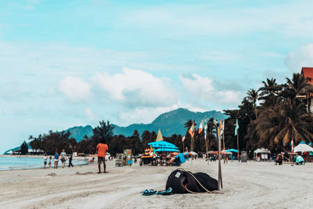 Koh Samui, Thailand - July 13, 2007: View to the sandy beach at Samui island, Thailand.
