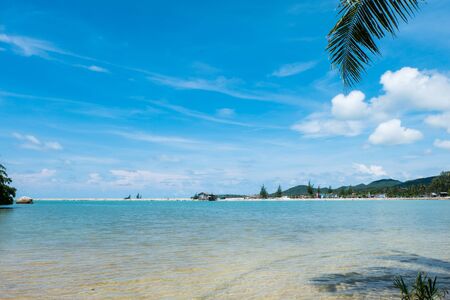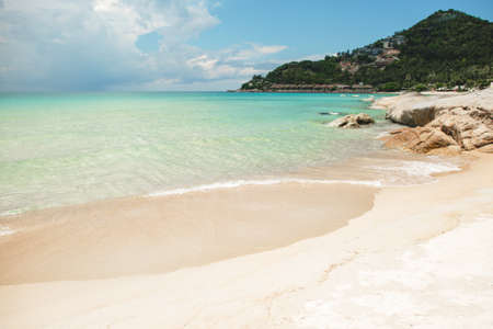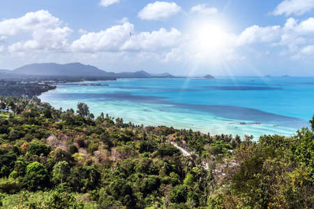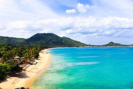 Amazing Koh Samui island beach and landscape panorama with clear turquoise water in Thailand.
