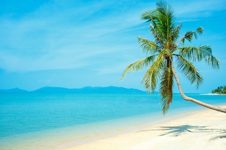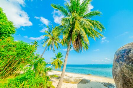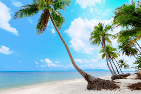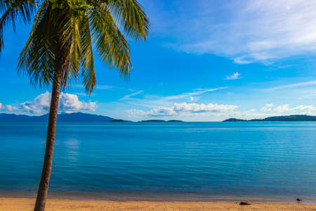 Beautiful tropical island beach, summer nature scene beach, blue sky and palm trees - Koh Samui Thailand