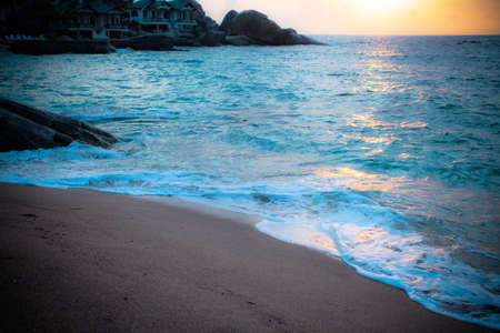 The rocky shore or beach, Andaman Sea, Thailand. Sunset
