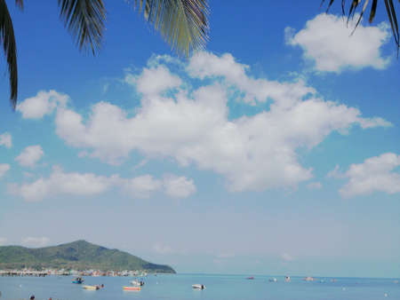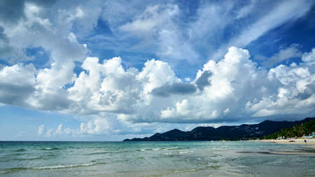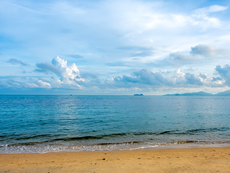 Beautiful seascape with sea waves and cloudy blue sky, Maenam beach, Koh Samui, Thailand.